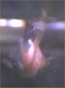 Here are three photos of one of my poor danios with advanced tumors. The photos were taken 8/11/04 in my 40 gallon tank. This fish lived for five more days before rupturing but had had tumors growing larger and larger over a few years. This is how many of my danios end up near the end but I had not seen a tumor quite this big before. Rear view of danio, side view of danio, and another side view of danio.
