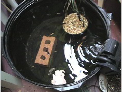 basement pond led to its quick demise. The two pots were set on bricks in the 20 gallon tub