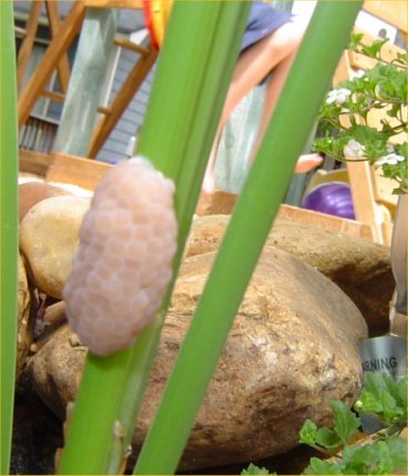 snail. The things on the snail are not laid as I normally see apple snail eggs though in large
