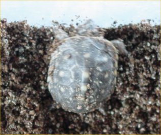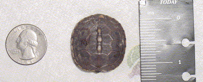 Jeff sent these three photos of a hatchling Eastern box turtle from Virginia on 10/8/04. The baby