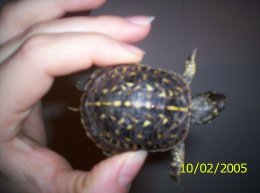 Debra sent me these photos of a baby box turtle (I think) on 9/30/05 (the first two) and 10/7/05